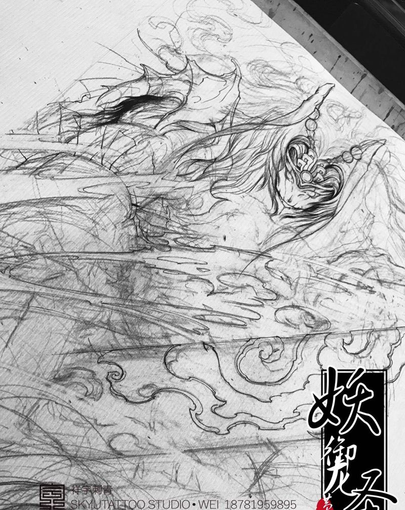 原创手稿•妖圣御龙纹身图片_手稿传统鬼神原创纹身图案