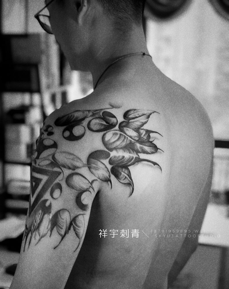 • 纹身吧推荐的披肩图腾半胛纹身图案作品展示