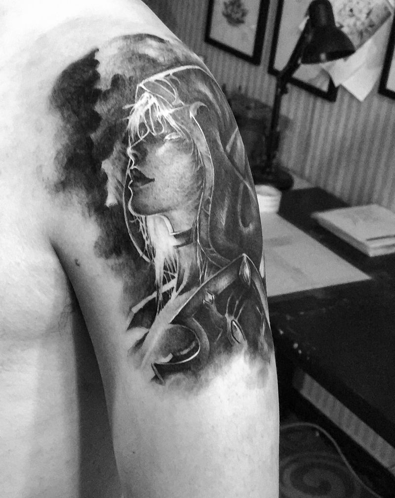 暗夜精灵纹身图片_成品手臂欧美写实人物纹身图案