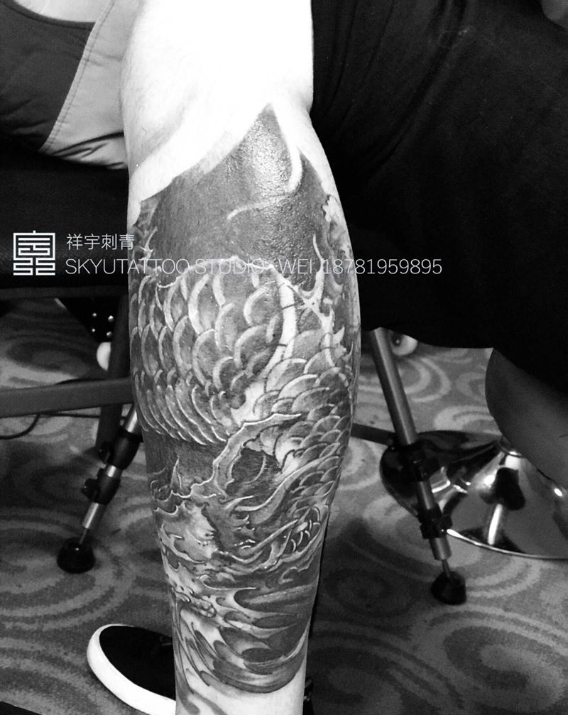 • T网红王老大花腿龙纹身图片_腿部新传统纹身图案