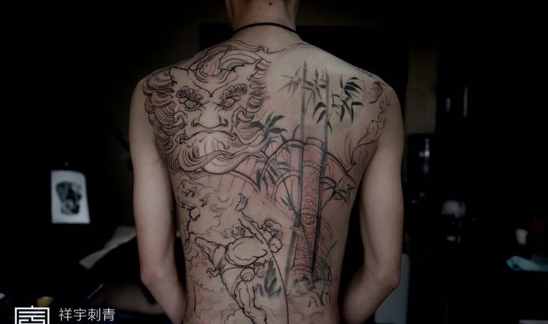 当前位置: 首页 >四川省成都市纹身店-成都祥宇私人定制纹身纹身图案>遮盖•原创亢金龙未完纹身图片_成品背部传统原创鬼神纹身图案