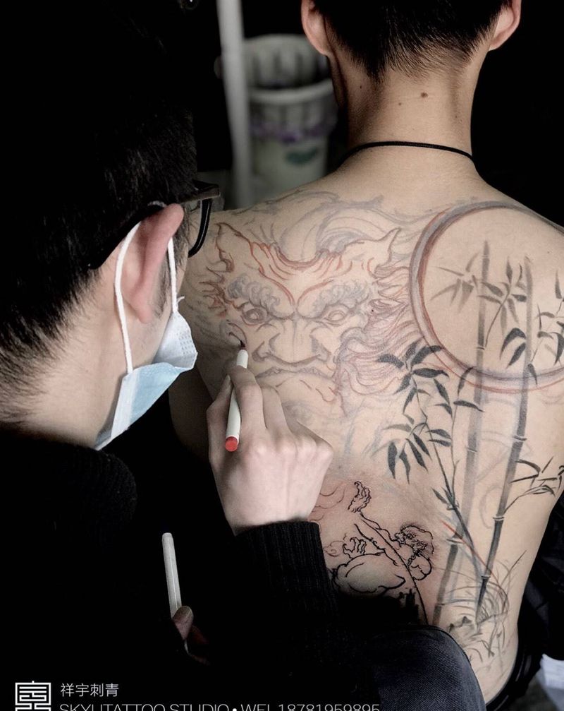 遮盖•原创亢金龙未完纹身图片_成品背部传统原创鬼神纹身图案