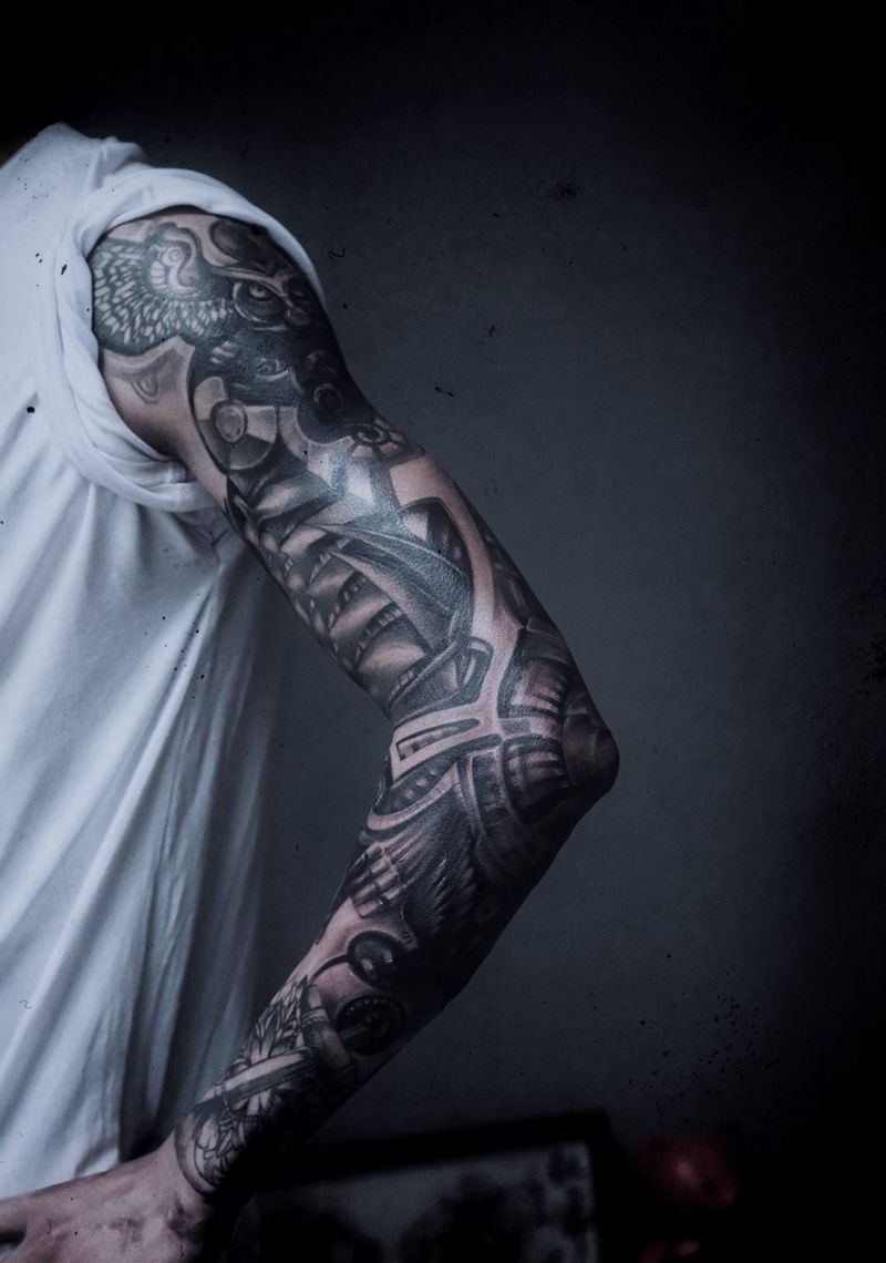 当前位置: 首页 >四川省成都市纹身店-成都祥宇私人定制纹身纹身图案>oldschoo花臂改机械臂纹身图片