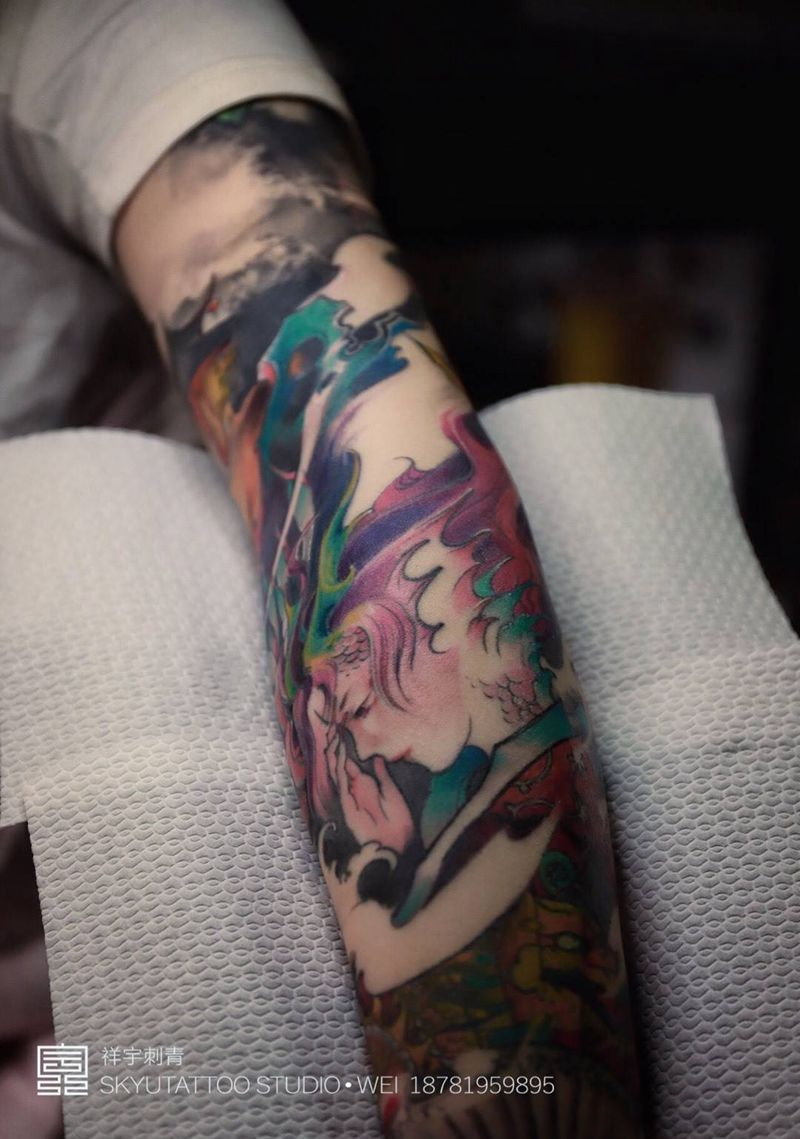 当前位置: 首页 >四川省成都市纹身店-成都祥宇私人定制纹身纹身图案>蛟女纹身图片_成品手臂传统原创人物植物纹身图案