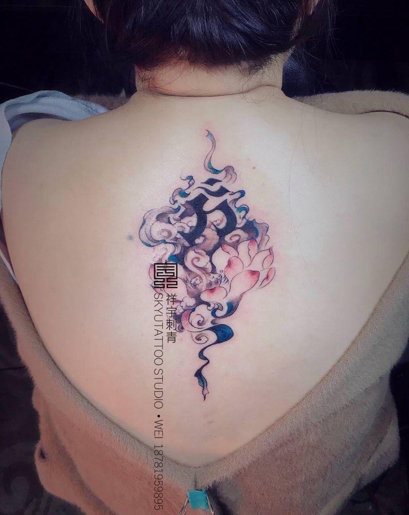 当前位置: 首页 >四川省成都市纹身店-成都祥宇私人定制纹身纹身图案>梵文莲花纹身图片_成品背部传统原创宗教纹身图案