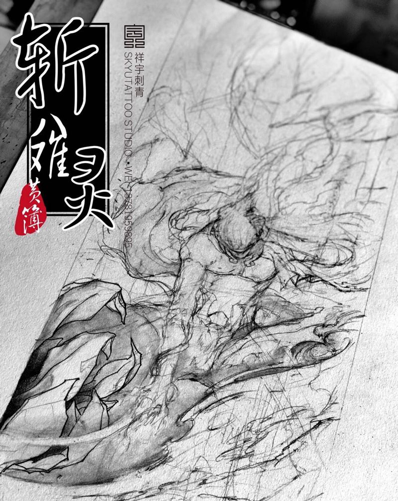 当前位置: 首页 >四川省成都市纹身店-成都祥宇私人定制纹身纹身图案>原创手稿•斩灵纹身图片_手稿传统鬼神原创纹身图案