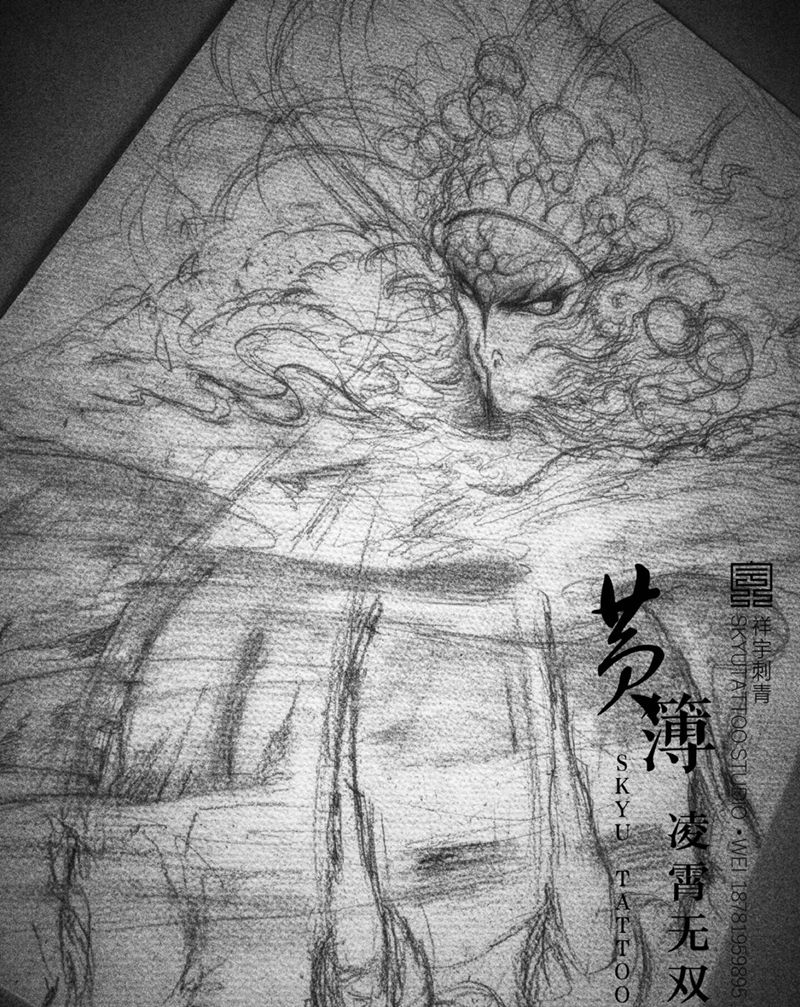 黄簿•大圣系列【凌霄无双】纹身图片_手稿传统鬼神原创纹身图案