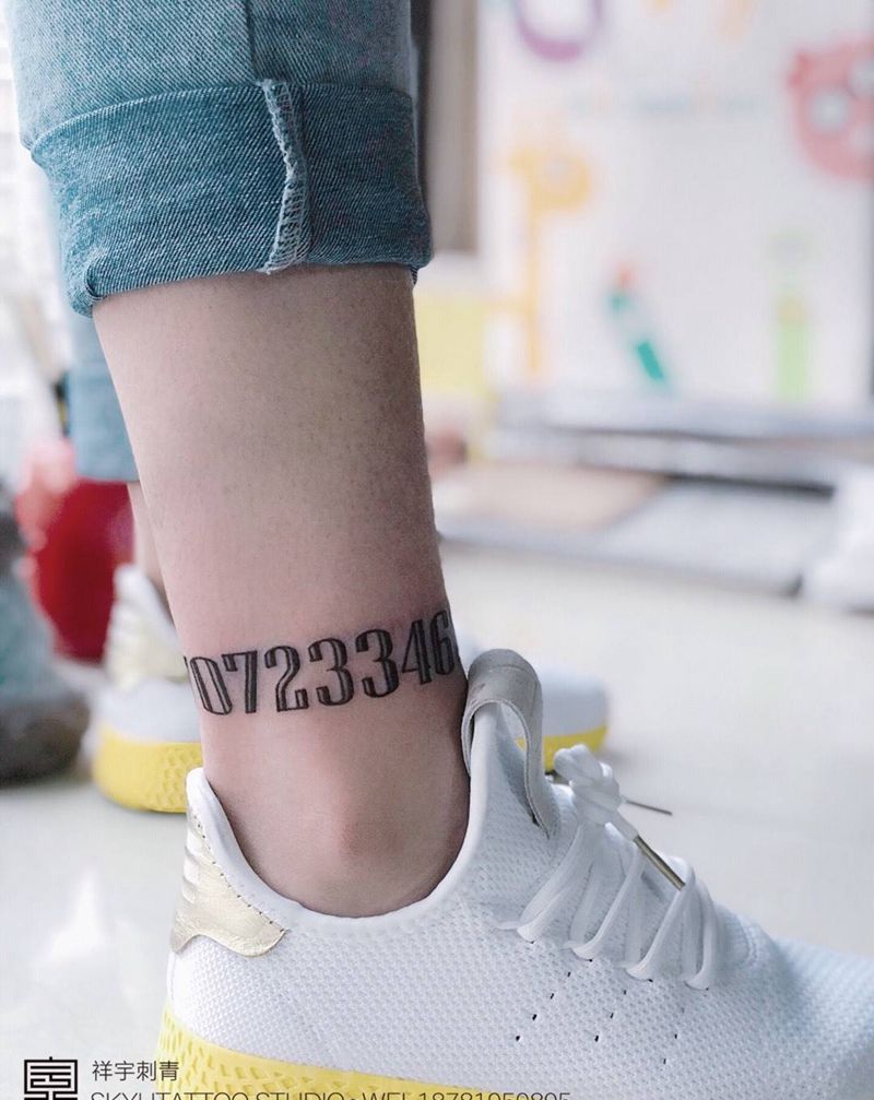 小清新数字纹身图片_成品脚部字符清新纹身图案