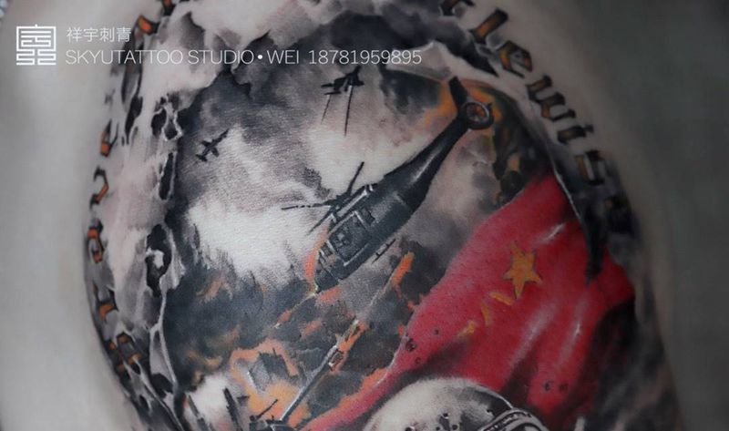 当前位置: 首页 >四川省成都市纹身店-成都祥宇私人定制纹身纹身图案>红色战魂纹身图片_成品手臂写实原创人物纹身图案