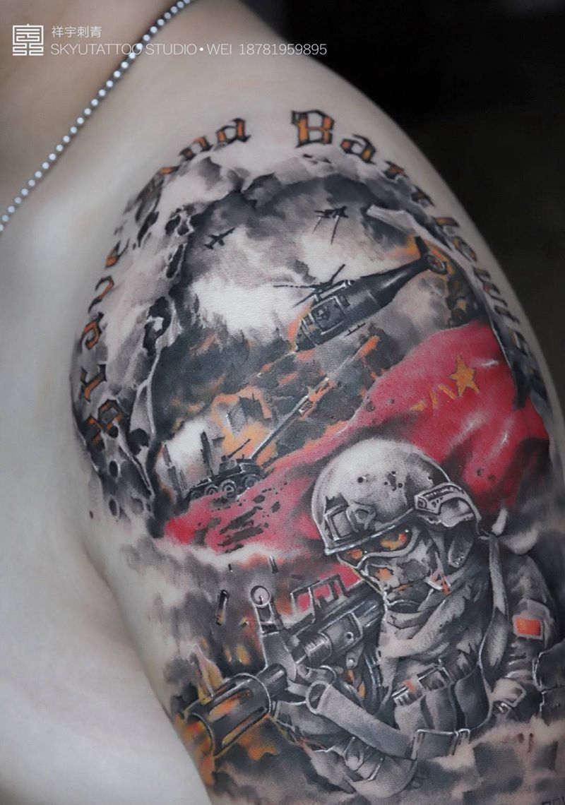 当前位置: 首页 >四川省成都市纹身店-成都祥宇私人定制纹身纹身图案>红色战魂纹身图片_成品手臂写实原创人物纹身图案
