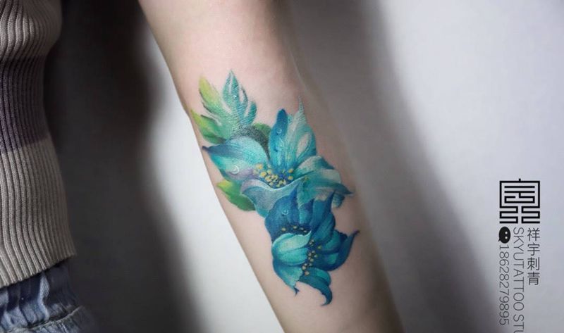 当前位置: 首页 >四川省成都市纹身店-成都祥宇私人定制纹身纹身图案>蓝花纹身图片_成品手部写实清新植物原创纹身图案