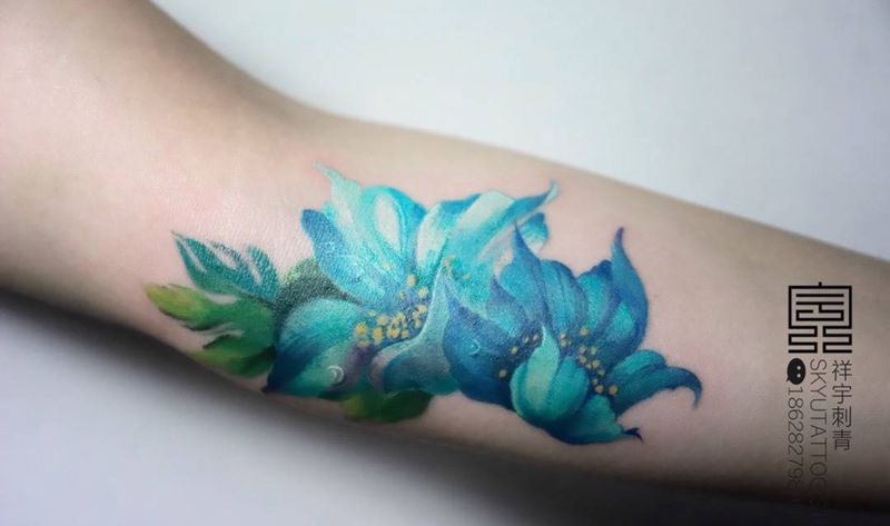 当前位置: 首页 >四川省成都市纹身店-成都祥宇私人定制纹身纹身图案>蓝花纹身图片_成品手部写实清新植物原创纹身图案