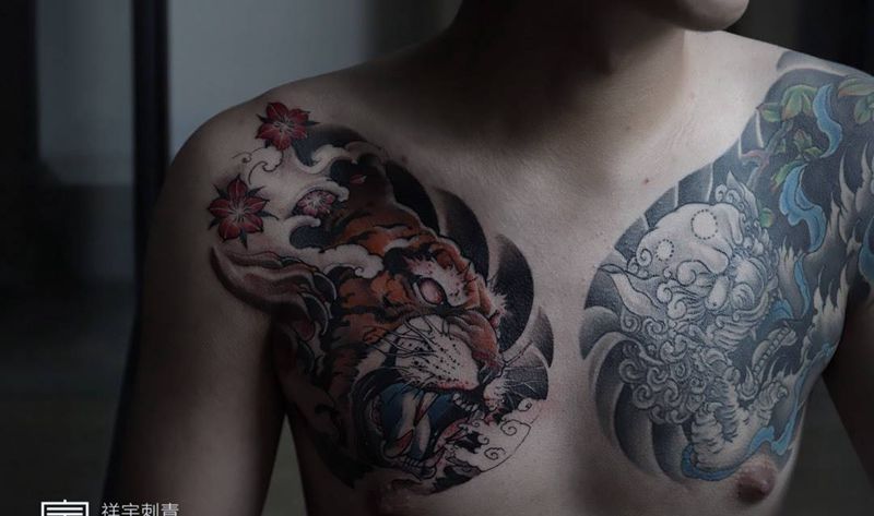 当前位置: 首页 >四川省成都市纹身店-成都祥宇私人定制纹身纹身图案>老虎纹身图片_成品胸部传统原创动物纹身图案