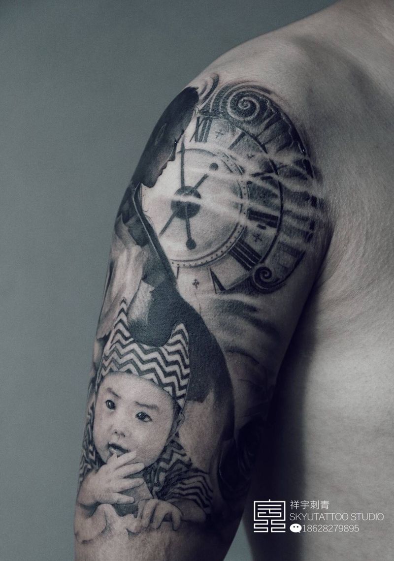 当前位置: 首页 >四川省成都市纹身店-成都祥宇私人定制纹身纹身图案>家人纹身图片_手臂欧美写实家人肖像纹身图案