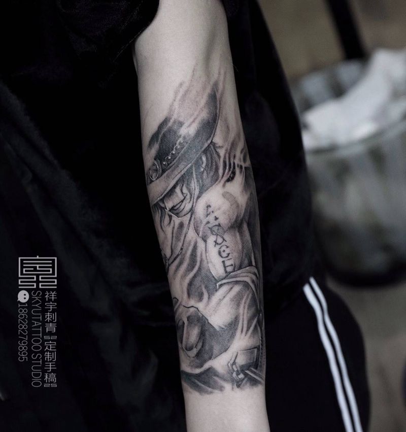 海贼王•艾斯纹身图片_手臂欧美写实艾斯海贼王纹身图案