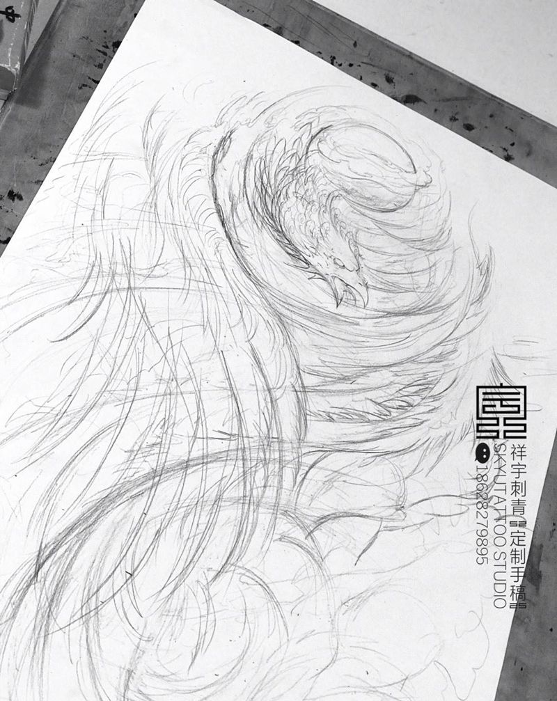 定制手稿【凤凰涅槃】纹身图片_手臂新传统凤凰纹身图案