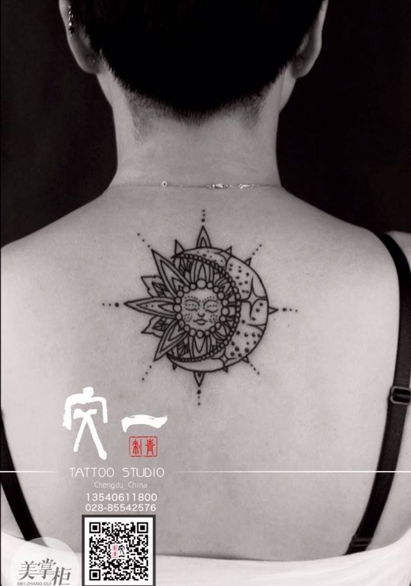 黑灰满背纹身图案