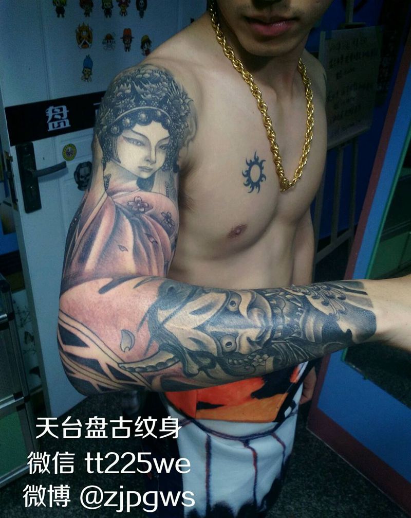 当前位置: 首页 >重庆市纹身店-天台盘古纹身脏辫纹身图案>花臂纹身图片_肩部手臂手部传统鬼神成品纹身图案
