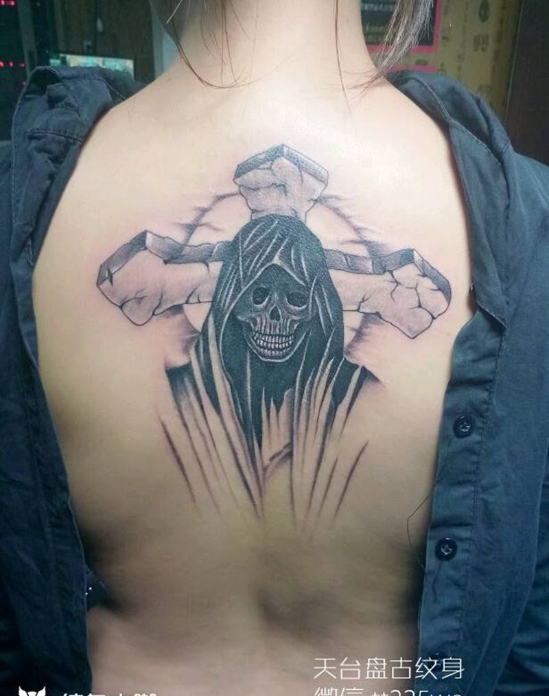 黑灰满背纹身图案