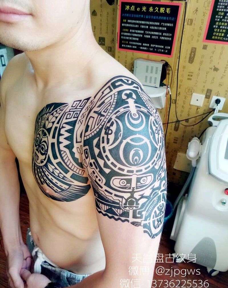 半甲图腾纹身图片_肩部胸部习俗图腾成品纹身图案