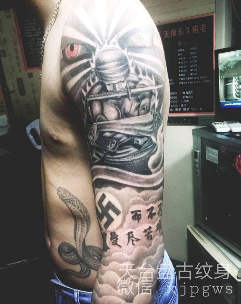 索隆的七分袖,哈哈哈纹身图片_手臂传统人物鬼神天台盘古盘古成品纹身图案