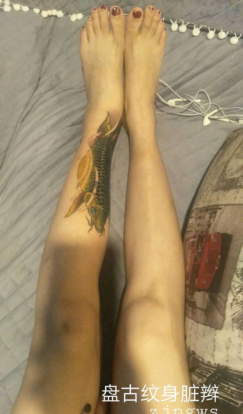 • T网红王老大花腿龙纹身图片_腿部新传统纹身图案
