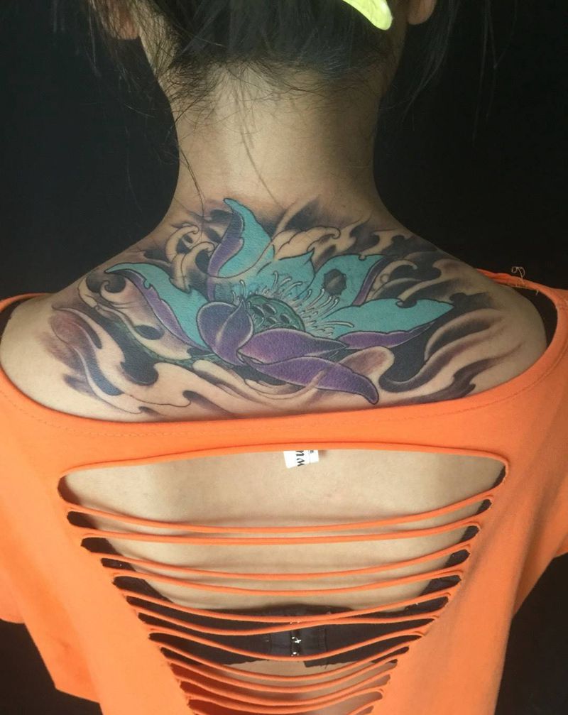 当前位置: 首页 >四川省成都市纹身店-涛刺青tattoo纹身图案>荷花纹身图片_成品肩部颈部传统植物刺青纹身图案