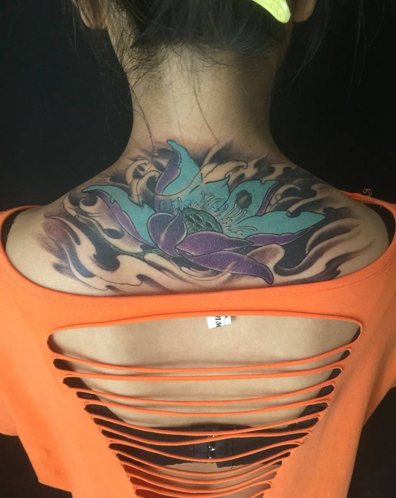 当前位置: 首页 >四川省成都市纹身店-涛刺青tattoo纹身图案>荷花纹身图片_成品肩部颈部传统植物刺青纹身图案
