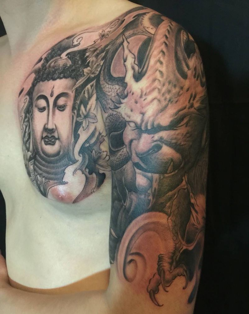 当前位置: 首页 >四川省成都市纹身店-涛刺青tattoo纹身图案>佛魔半甲纹身图片_成品手部胸部传统刺青纹身图案