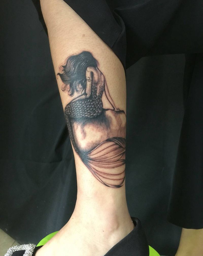 美人鱼纹身图片_成品腿部肖像人物纹身图案
