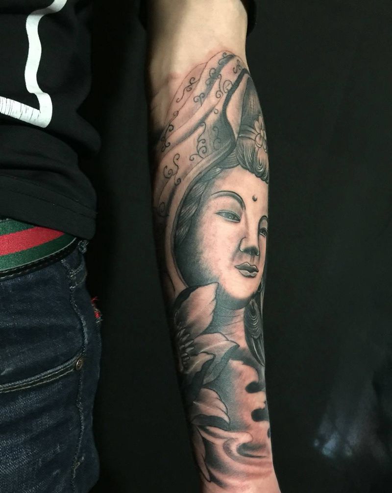 小臂内侧观音纹身图片_成品手臂传统刺青纹身图案