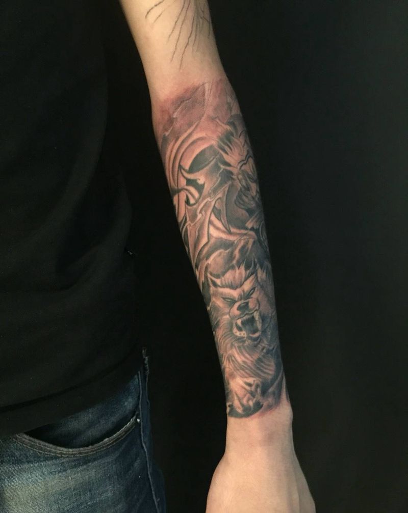 包小臂纹身图片_成品手臂传统人物刺青纹身图案
