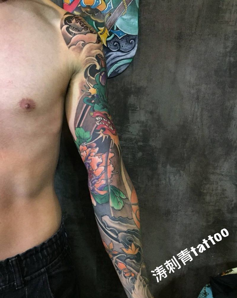 当前位置: 首页 >四川省成都市纹身店-涛刺青tattoo纹身图案>彩色花臂纹身图片