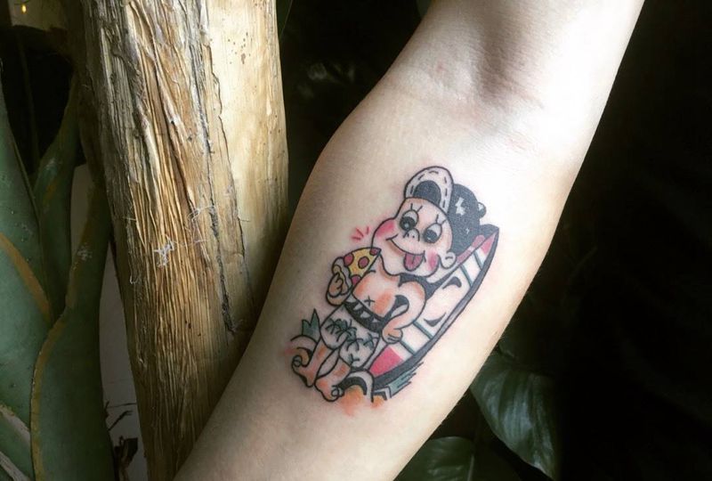 Oldschool冲浪男孩纹身图片_成品手臂人物纹身图案