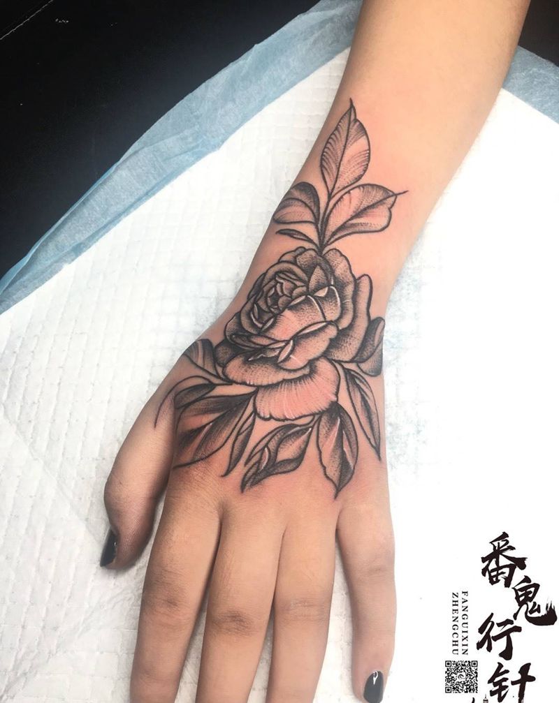 • 手背潮流时尚的玫瑰花眼睛纹身图案