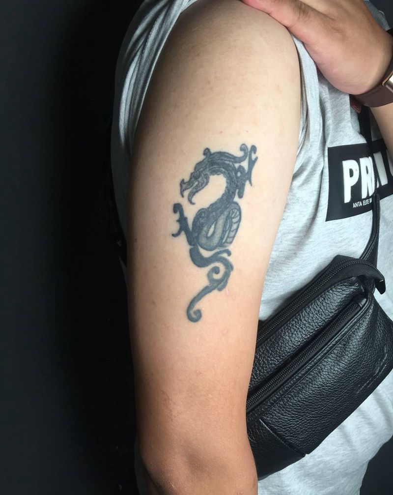 • T网红王老大花腿龙纹身图片_腿部新传统纹身图案