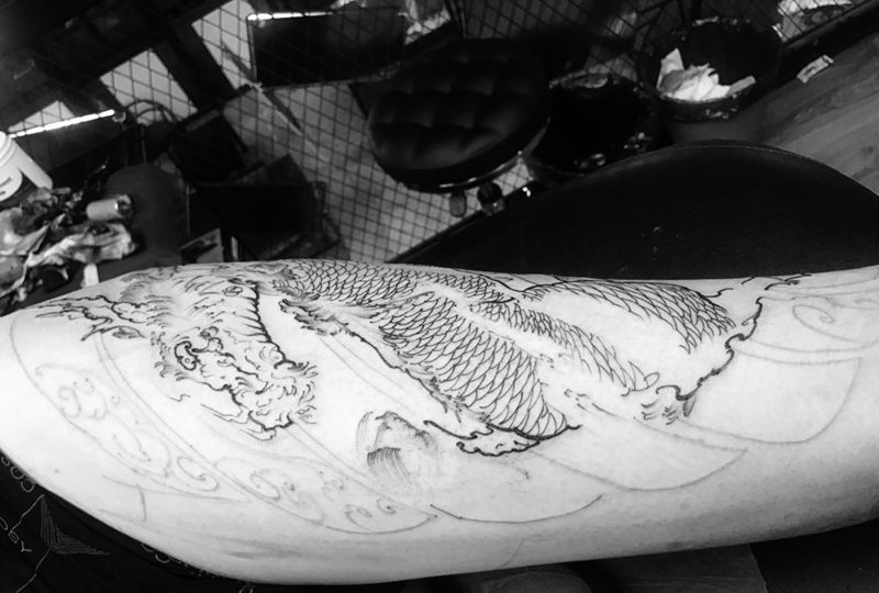 • T网红王老大花腿龙纹身图片_腿部新传统纹身图案