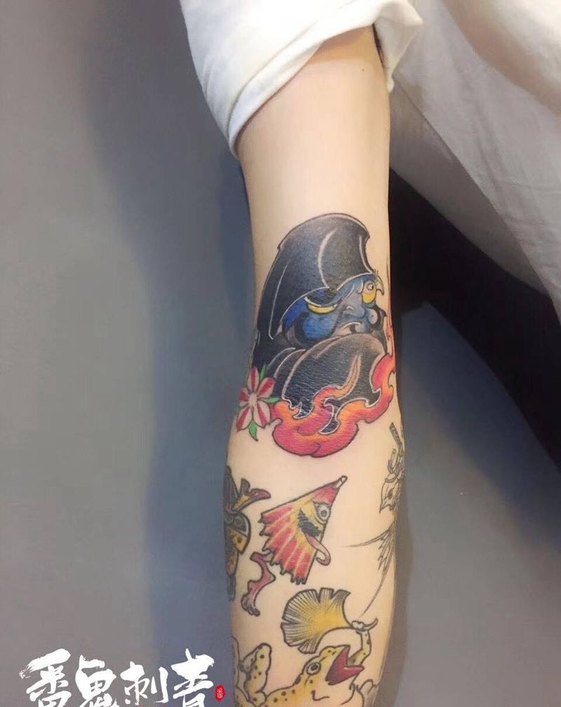 当前位置: 首页 >四川省成都市纹身店-番鬼刺青纹身图案>达摩蛋纹身图片_成品手臂传统鬼神纹身图案