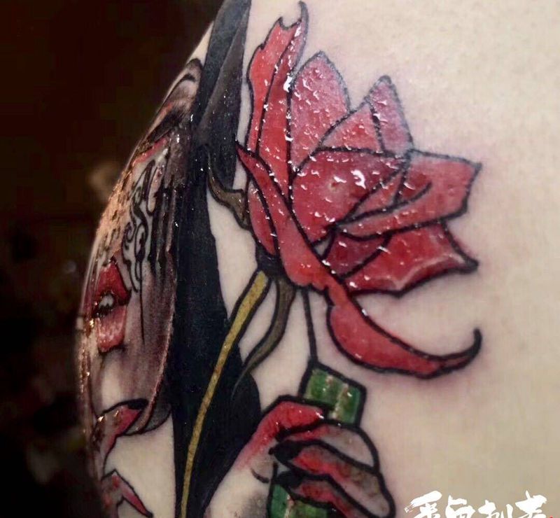 • 女性大花胸纹身_43张霸气漂亮的女性大花胸纹身图案作品