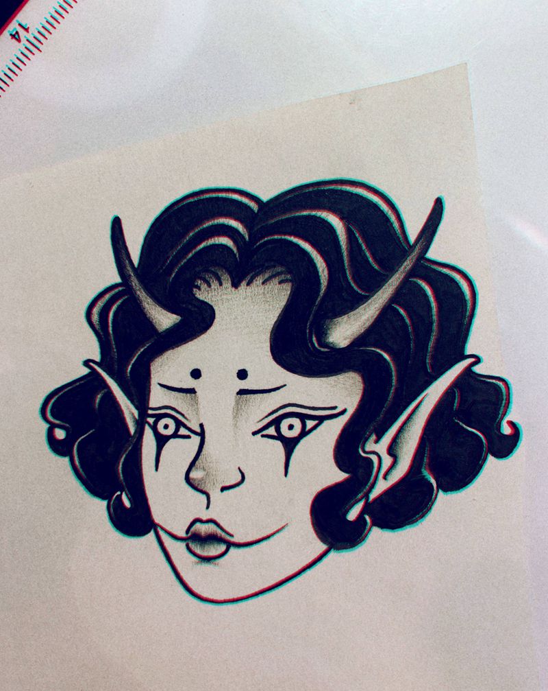当前位置: 首页 >四川省成都市纹身店-小龙刺青纹身图案>卷发妹纹身图片_手臂Old SchoolNew School头像女人暗黑纹身图案