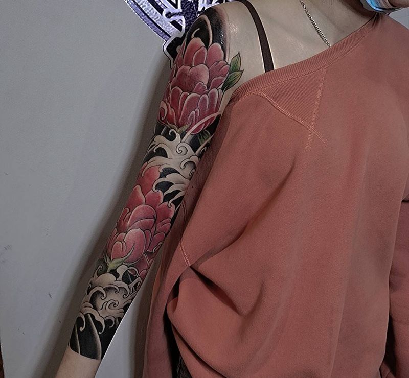 花臂,纹身图片_手臂肩部老传统纹身图案