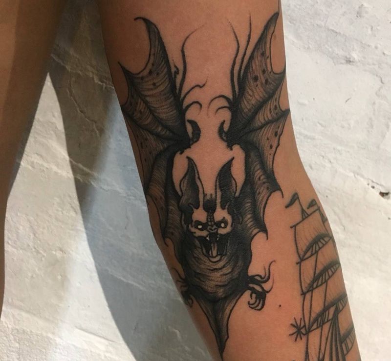 • T网红王老大花腿龙纹身图片_腿部新传统纹身图案