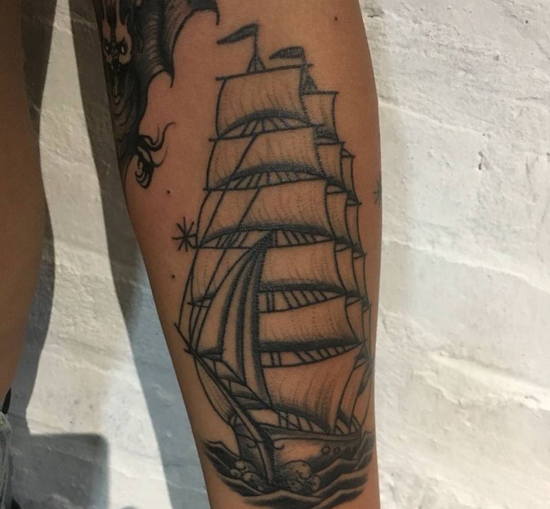 • T网红王老大花腿龙纹身图片_腿部新传统纹身图案