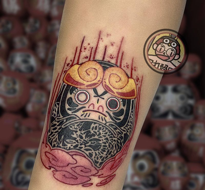 当前位置: 首页 >四川省成都市纹身店-成都怪兽巫纹身刺青工作室纹身图案>达摩蛋纹身图片_手臂New School纹身图案