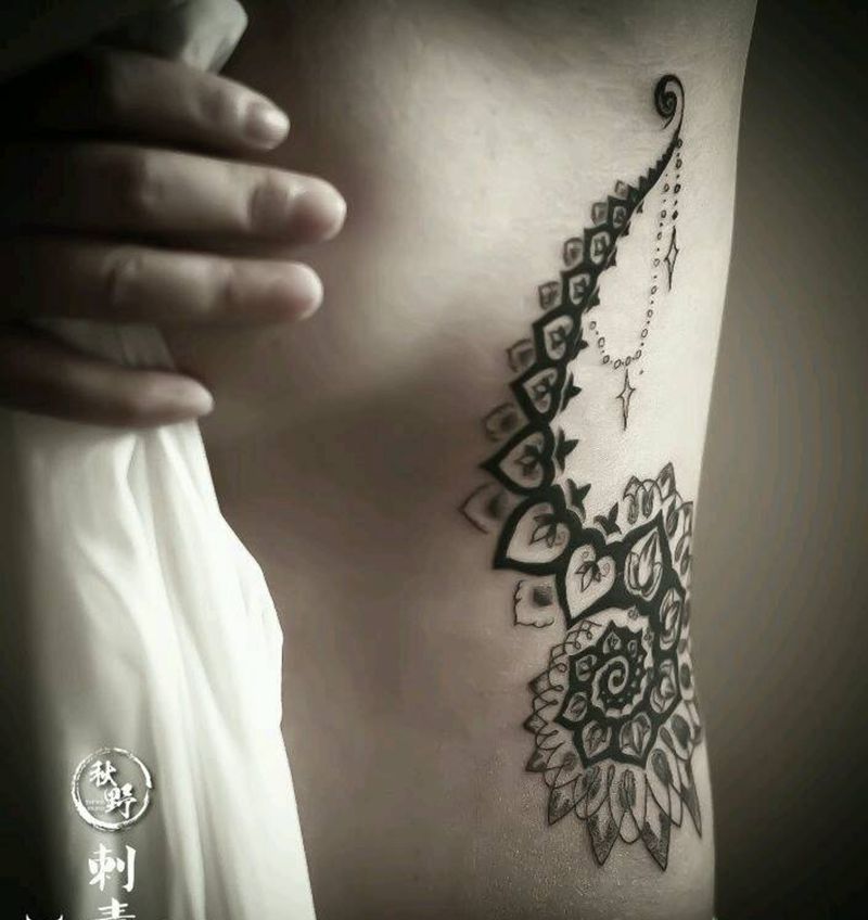 当前位置: 首页 >四川省成都市纹身店-成都怪兽巫纹身刺青工作室纹身图案>梵花纹身图片_腰部清新静物成品纹身图案