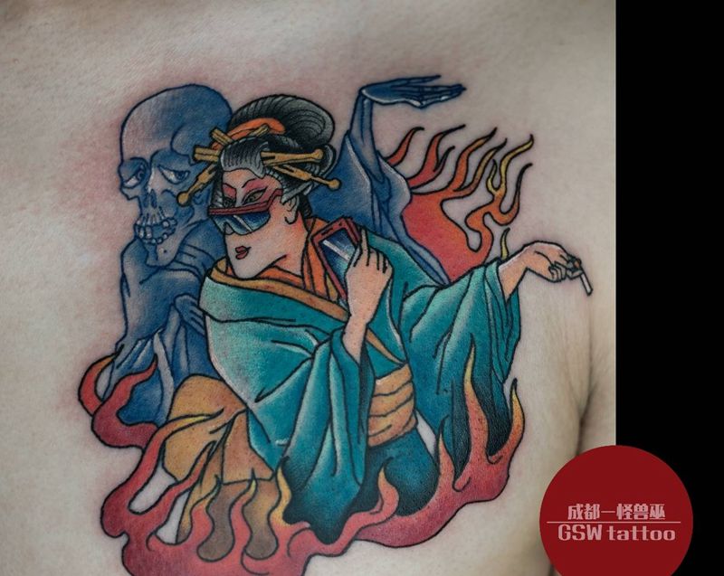 女性大花胸纹身_43张
