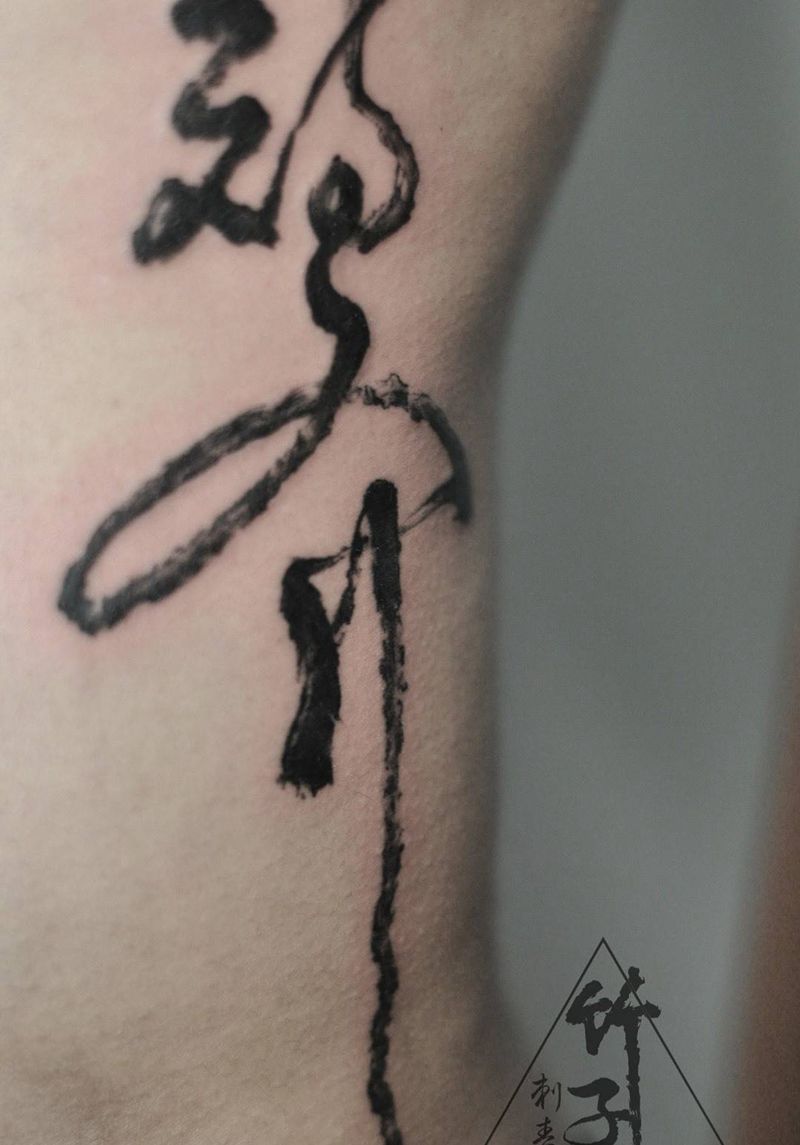 当前位置: 首页 >四川省成都市纹身店-竹子刺青纹身图案>书法猜猜内容写的什么纹身图片_成品腰部国画习俗字符原创纹身图案