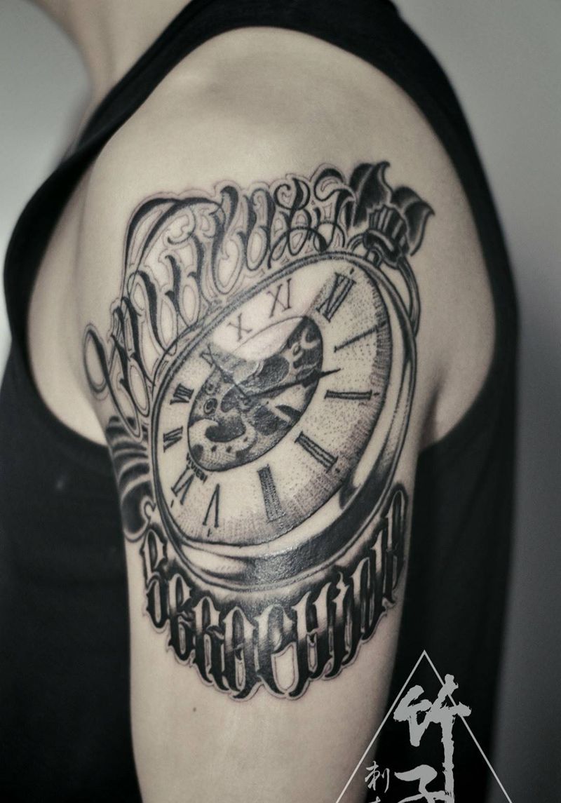 当前位置: 首页 >四川省成都市纹身店-竹子刺青纹身图案>时间纹身图片_成品手臂欧美字符原创纹身图案