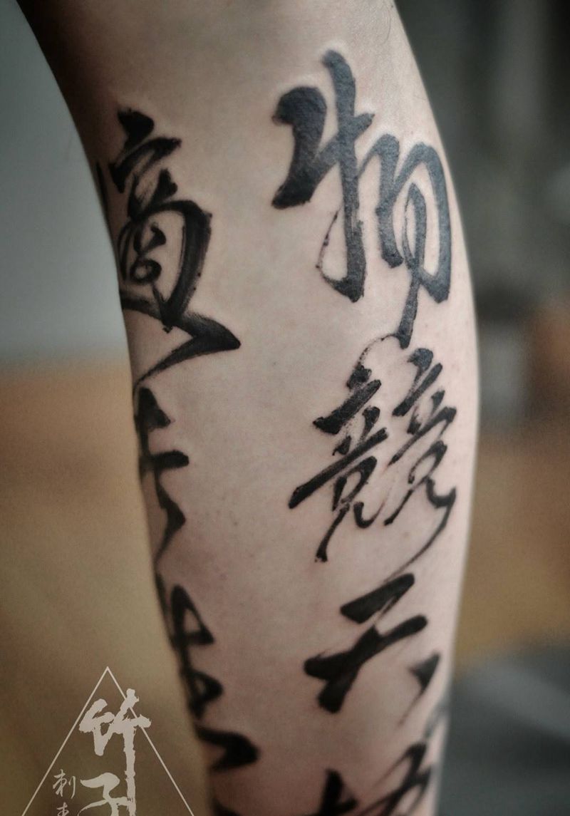 当前位置: 首页 >四川省成都市纹身店-竹子刺青纹身图案>书法纹身图片_成品腿部国画传统原创字符纹身图案