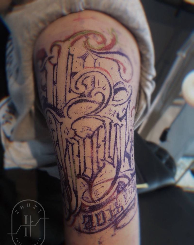 当前位置: 首页 >四川省成都市纹身店-竹子刺青纹身图案>花体英文纹身图片_手臂手部花体字名字生日纹身图案